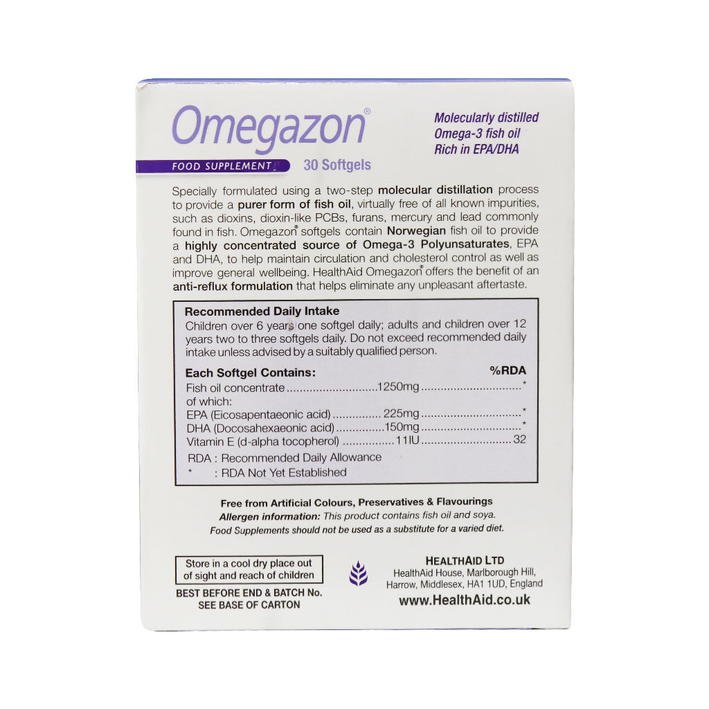 امگازون، موثر در کاهش تری گلیسرید و LDL (چربی بد خون) به بالا رفتن HDL (چربی خوب خون) کمک میکند. omegazon هلث اید در کاهش التهابات نقش دارد. به سلامت قلب و عروق کمک میکند. باعث بهبود عملکرد مغز میگردد. omegazon به سلامت چشم و بهبود بینایی کمک میکند. حاوی ویتامین E