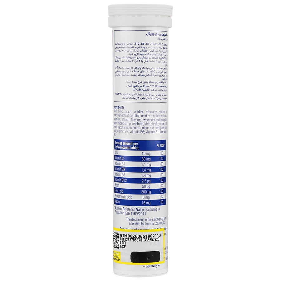 - هر قوطی قرص جوشان زینک و ب کمپلکس مناسب استفاده به مدت 20 روز می باشد.