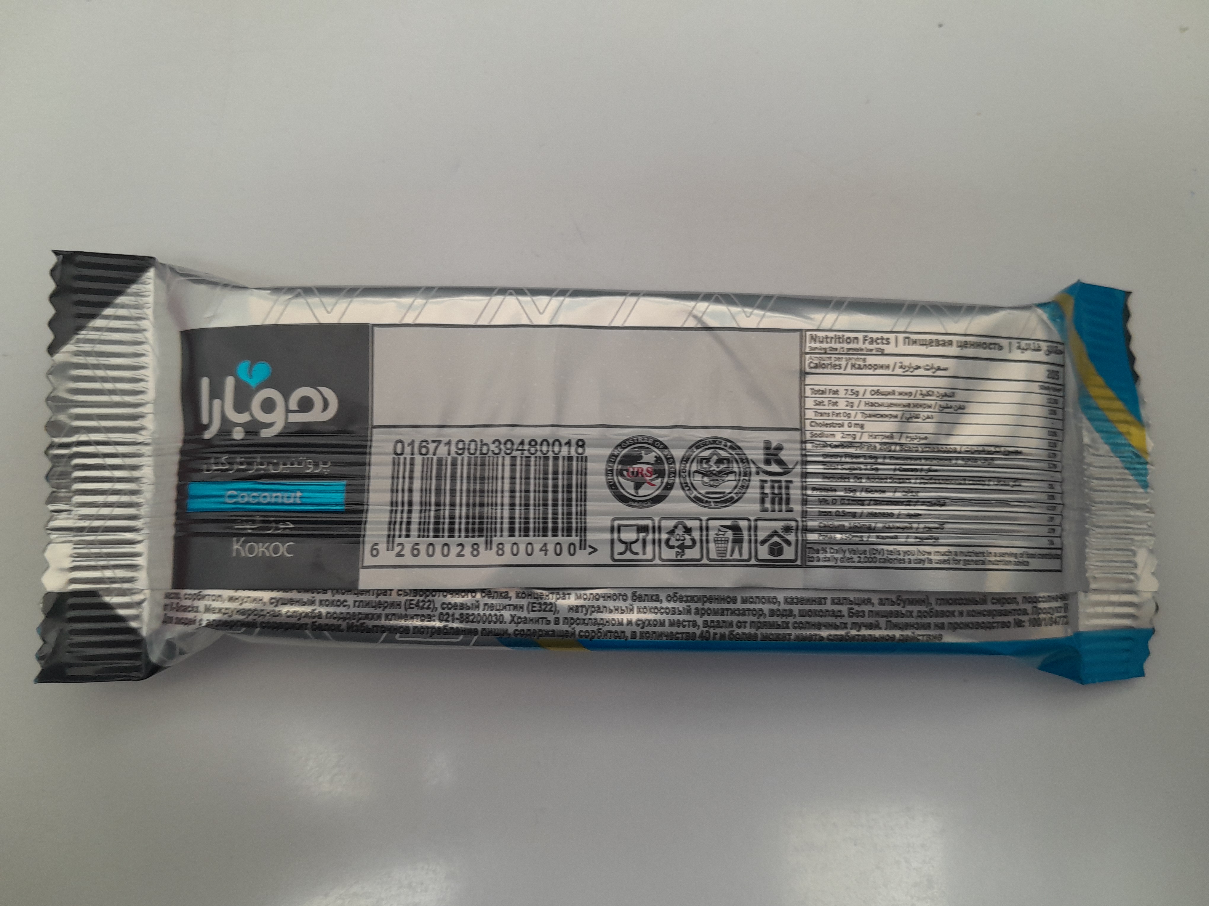 شکلات پروتئین بار نارگیلی هوبارا