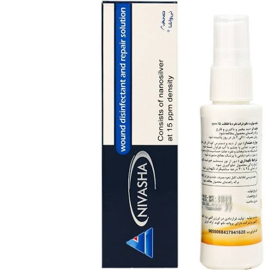 اسپری ضد عفونی و ترمیم کننده زخم نیواشا با تکنولوژی نانو نقرهه برای اولین بار در ایران و جهان تولید شده است. این اسپری دارای خواص آنتی میکروبیالی بوده و از تکثیر و رشد میکرو ارگانیزم های بیماری زا در محل زخم جلوگیری نموده و به این ترتیب به پیشگیری ودرمان عفونت زخم کمک می کند.