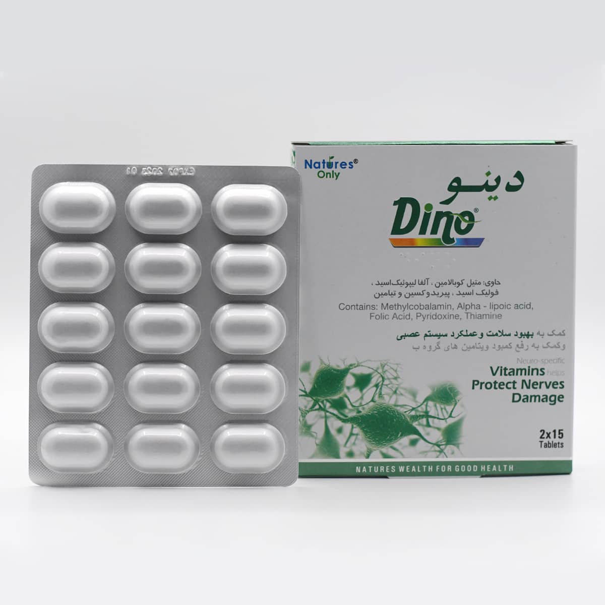 - دینو، مکمل تخصصی نوروپاتی دیابتی فرمولاسیون علمی برای حفاظت و بازسازی سیستم عصبی محیطی و مرکزی