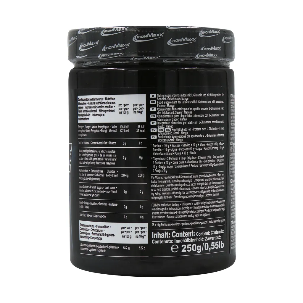 - گلوتامین ایرون مکس، مکمل تغذیهای حاوی 100% پودر خالص ال گلوتامین