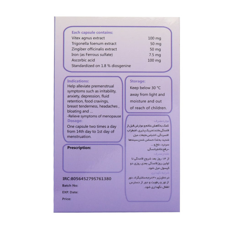 - کپسول simognusکمک به بهبود برخی علائم سندرم پیش از قاعدگی (PMS) مانند تحریک پذیری، اضطراب، افسردگی، حساس شدن سینه ها، سردرد، نفخ و احتباس مایعات