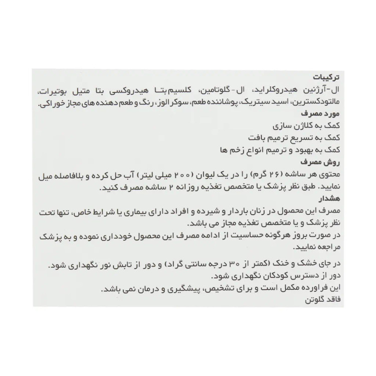 - حاوی ال آرژنین، ال گلوتامین و کلسیم بتاهیدروکسی بتامتیل بوتیرات (HMB)