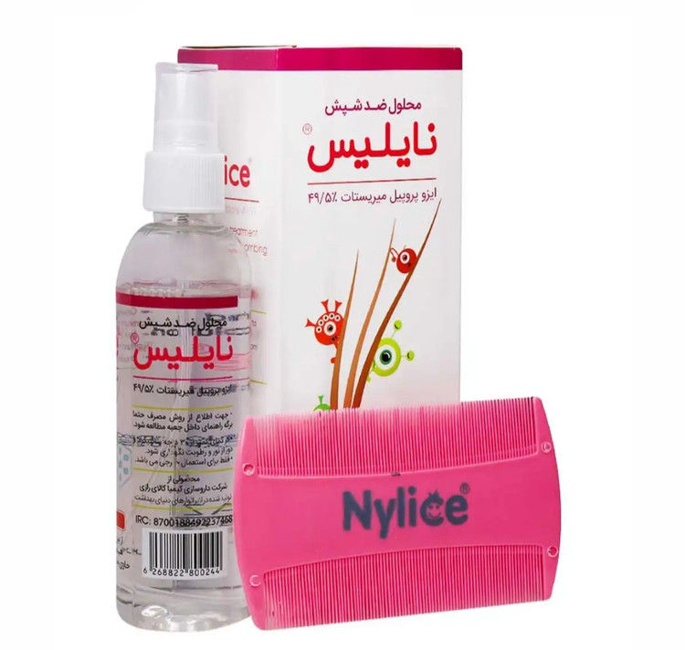 - محلول ضد شپش نایلیس، از بین برنده شپش و تخم شپش با مکانیسم فیزیکی