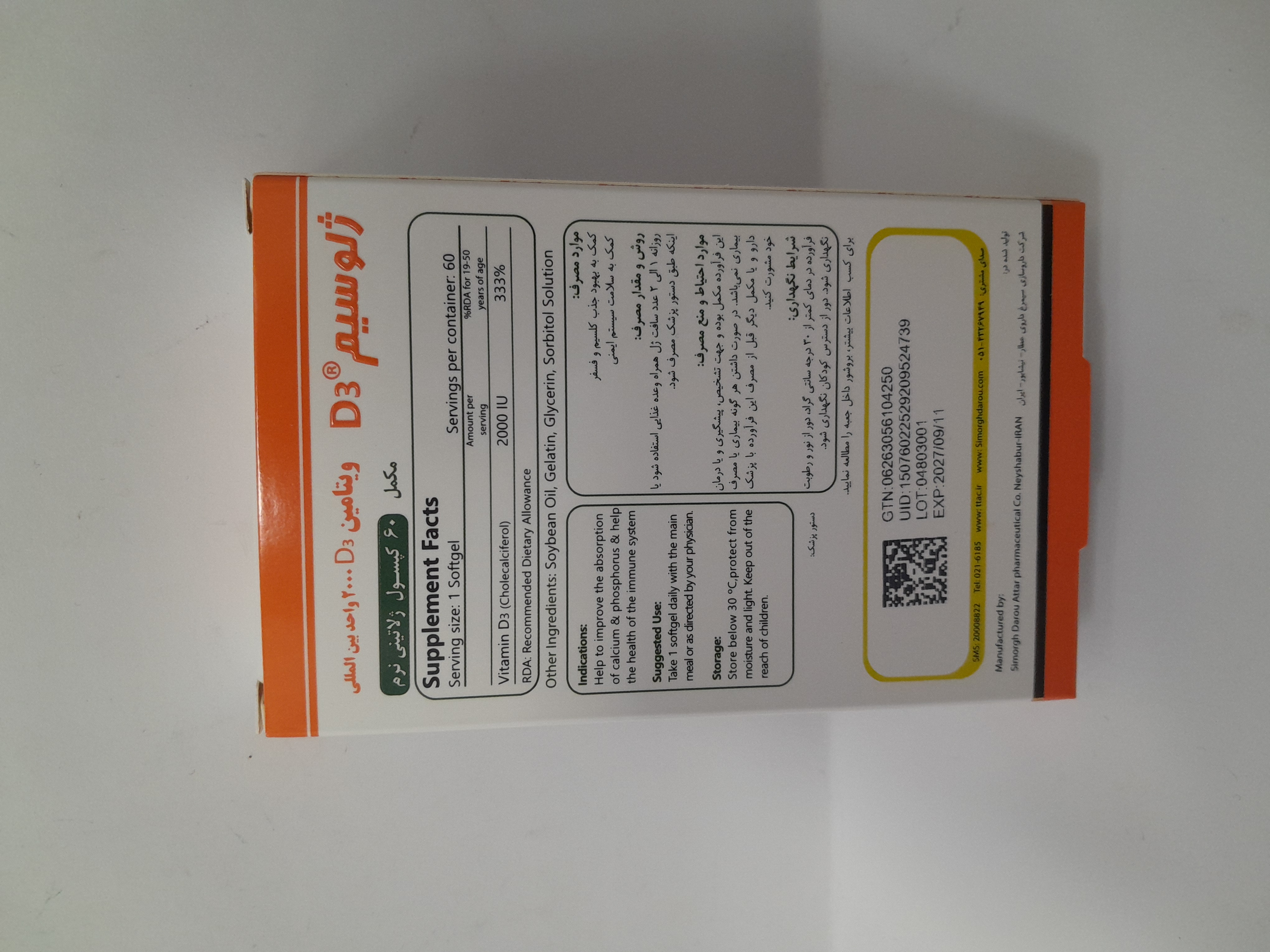 ویتامین د3 2000 سیمرغ