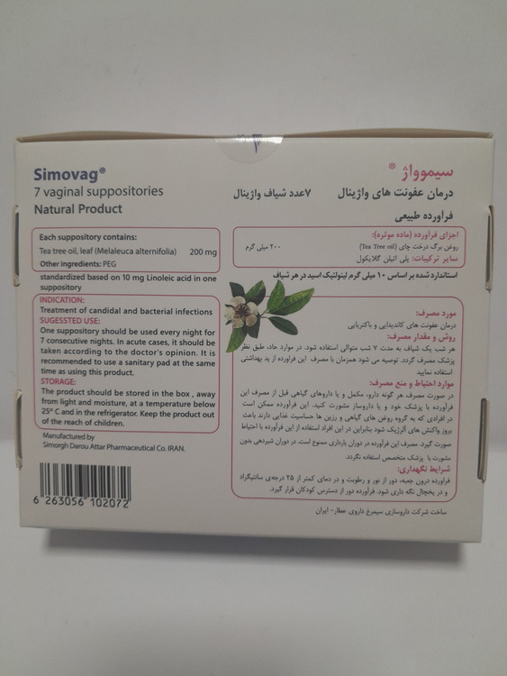 شیاف واژینال سیموواژ سیمرغ داروی عطار بسته 7 عددی