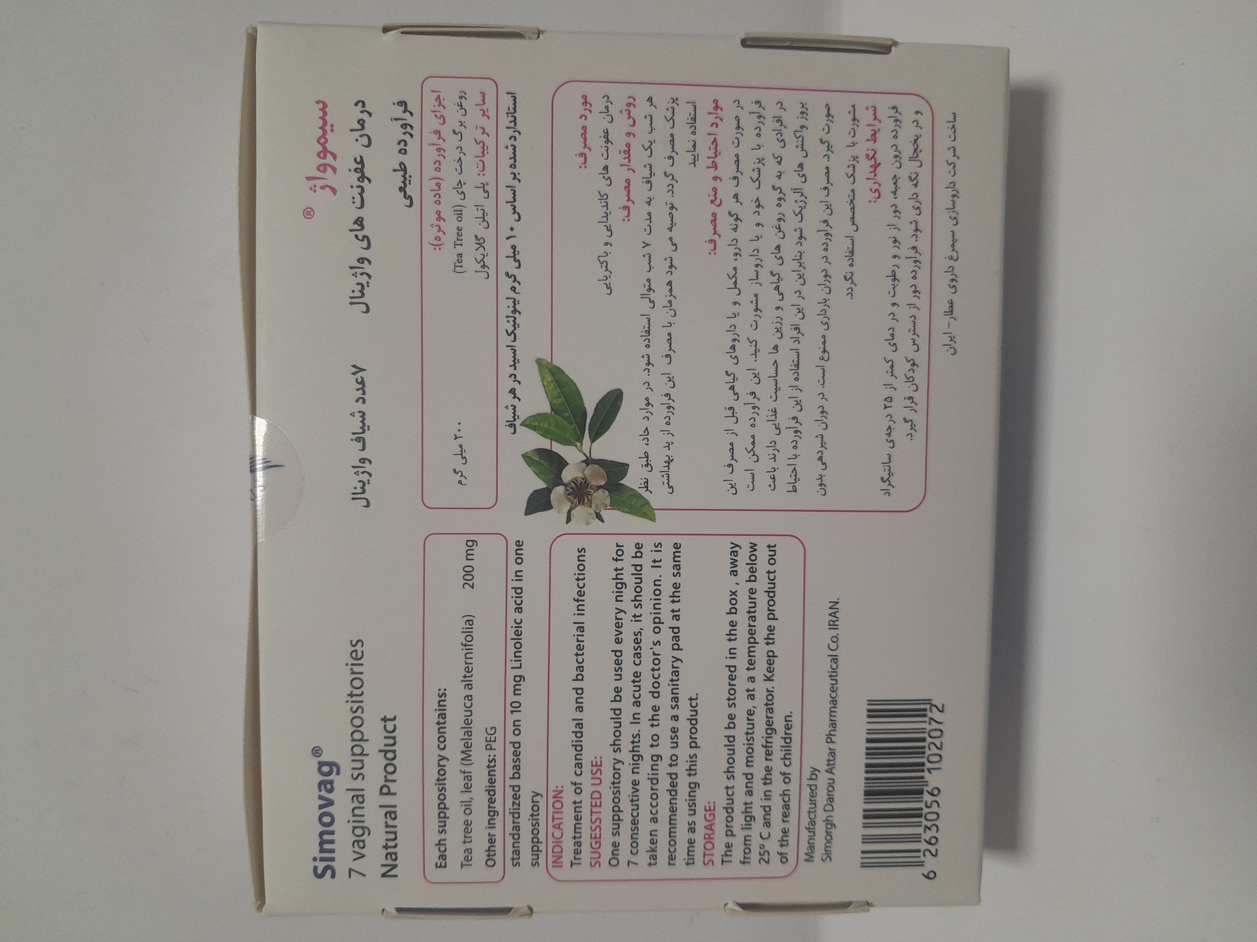 شیاف واژینال سیموواژ سیمرغ داروی عطار بسته 7 عددی