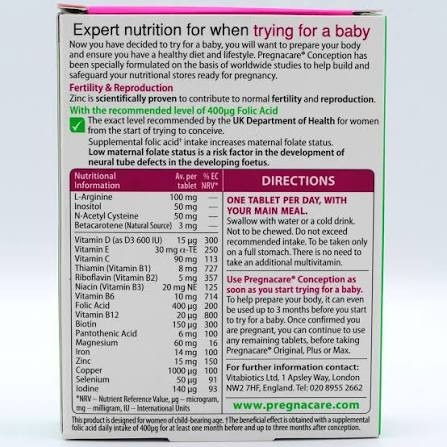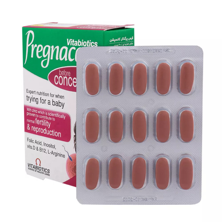 - pregnacare conception قرص، فاقد گلوتن، فاقد ژلاتین، فاقد مخمر، فاقد رنگ مصنوعی، فاقد نگهدارنده