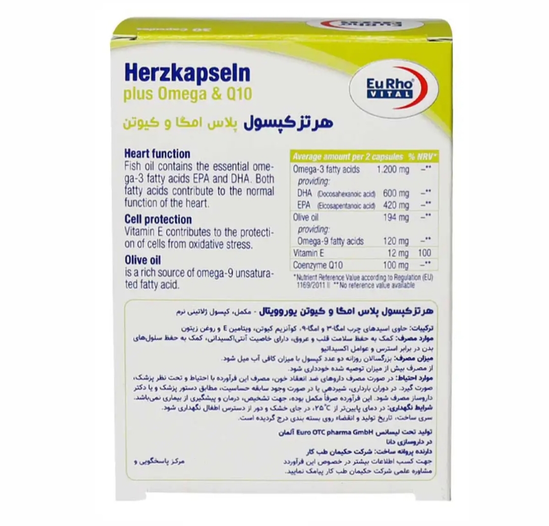 - هرتز کپسول پلاس امگا و کیوتن، حاوی اسیدهای چرب ضروری امگا 3
