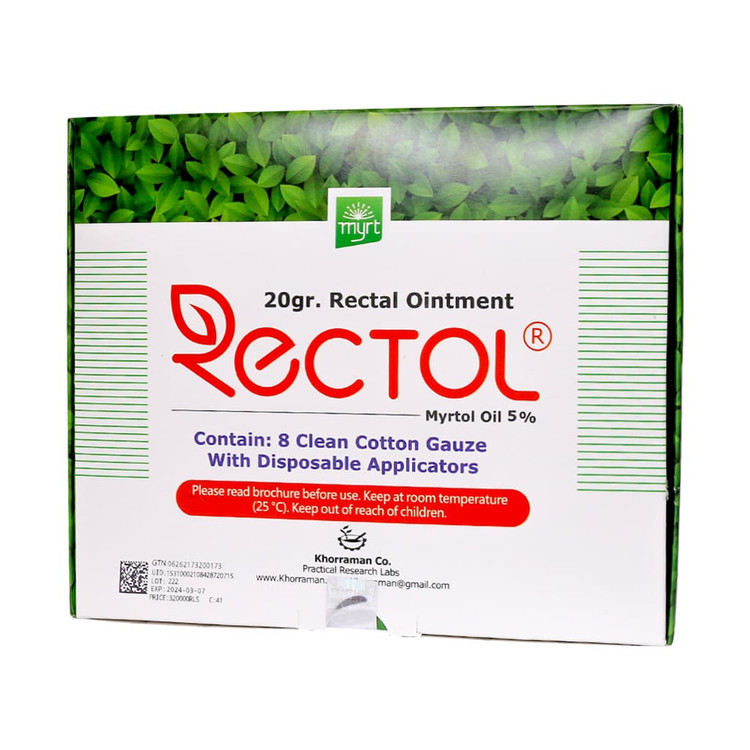 - رکتول، پماد مقعدی تهیه شده از اسانس گیاه مورد