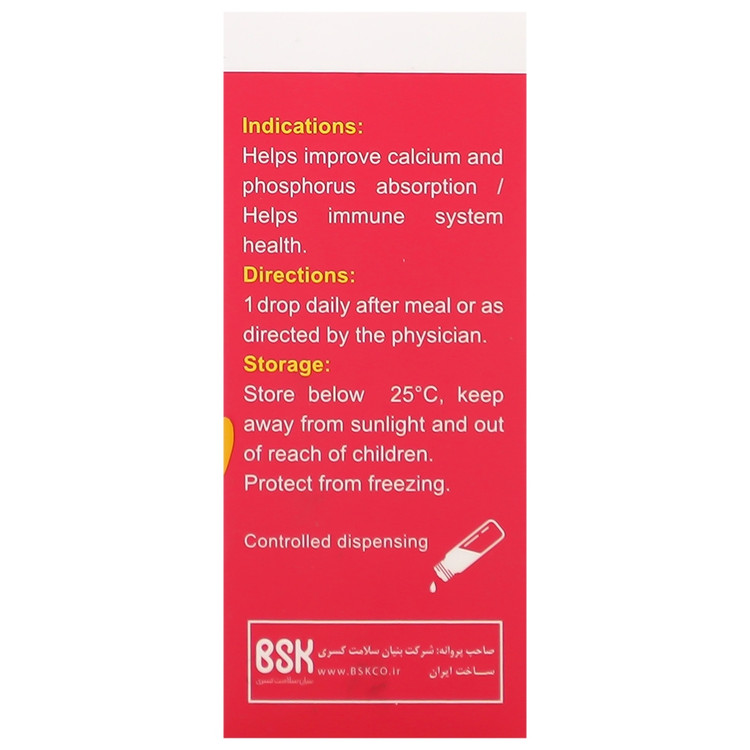قطره خوراکی ویتامین D3 1000 بی اس کی یک مکمل مناسب برای تأمین نیاز روزانه به ویتامین D در نوزادان، کودکان و بزرگسالان است. این فرآورده حاوی کولهکلسیفرول (ویتامین D3) میباشد که با افزایش جذب کلسیم و فسفر، به تقویت استخوانها و دندانها کمک میکند. ویتامین D نقش مهمی در عملکرد طبیعی سیستم ایمنی، تنظیم فعالیت ماهیچهها و پیشگیری از نرمی استخوان دارد. با توجه به کمبود دریافت نور خورشید در بسیاری از افراد بهویژه در مناطق کمآفتاب یا در کودکانی که پوست خود را میپوشانند، مصرف این مکمل میتواند از بروز کمبود ویتامین D جلوگیری کند.