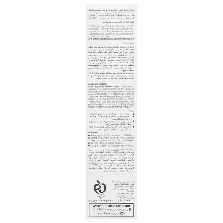 شامپو ضد شوره فولیکا مناسب موهای خشک موجب کاهش رشد سلول های پوست سر و به دنبال آن، کاهش پوسته ریزی و شوره به کمک ترکیب زینک پیریتیون در این شامپو می شود.