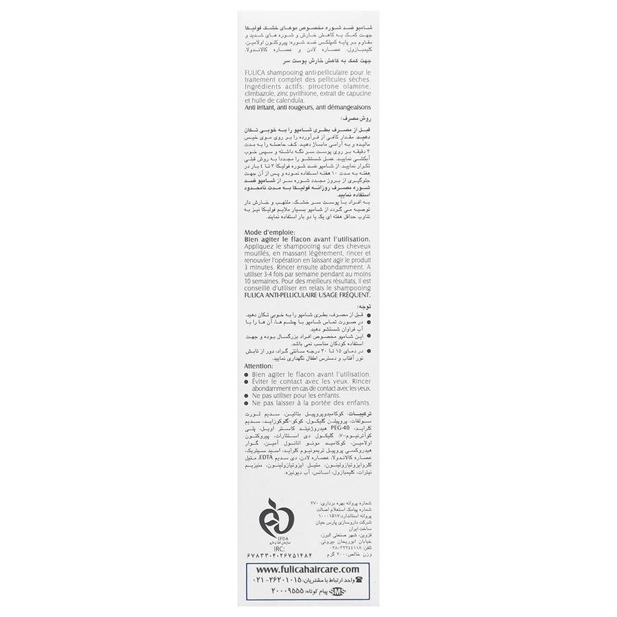 شامپو ضد شوره فولیکا مناسب موهای خشک، خارش و خشکی پوست سر ناشی از شوره سنگین را به کمک عصاره های گیاهی مانند گل لادن و روغن کالاندولا (گل همیشه بهار) از بین می برد.