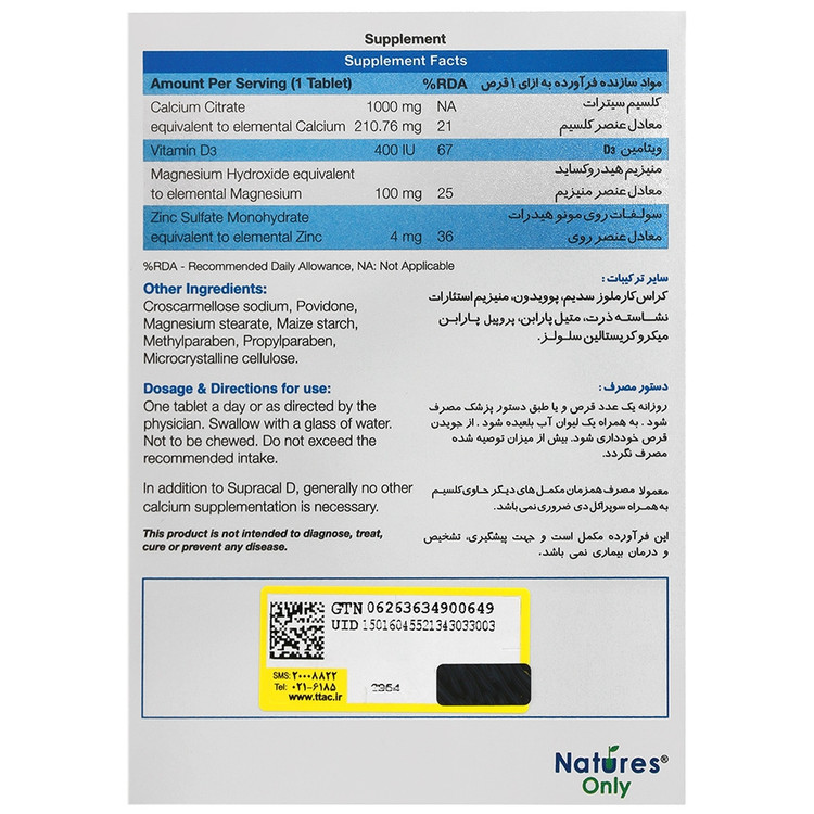 - قرص سوپراکل دی حاوی کلسیم به فرم سیترات