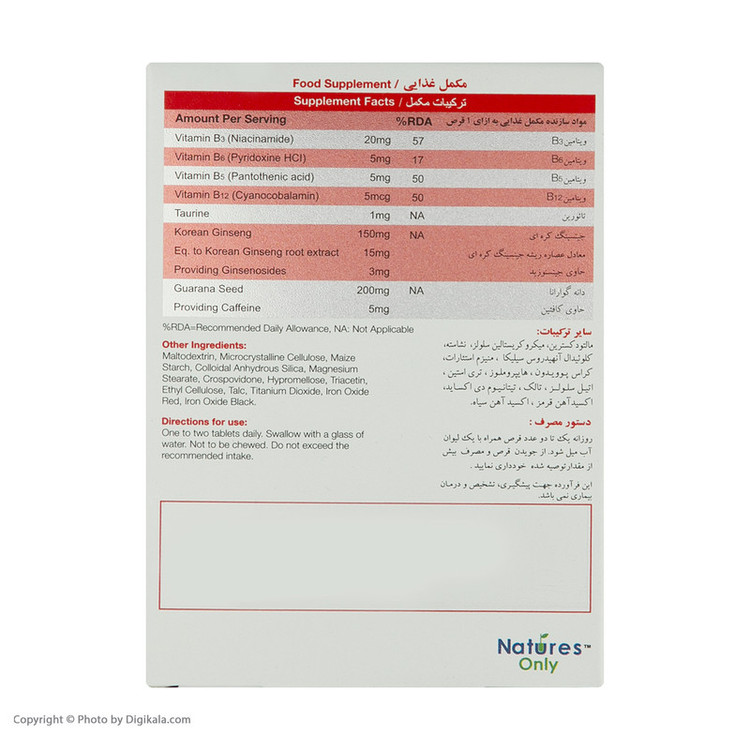 - حاوی ترکیبی از ویتامینهای گروه B، تائورین، جینسینگ کرهای و گوارانا