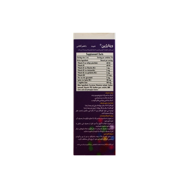 - ویتارژین، تولید شده با طعم دلپذیر آناناس جهت پذیرش بهتر کودک