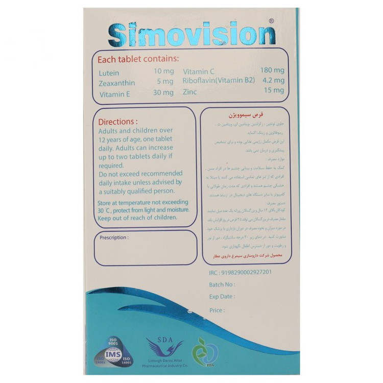 - سیموویژن حاوی موادمغذی موردنیاز برای حفظ سلامت چشم و بینایی