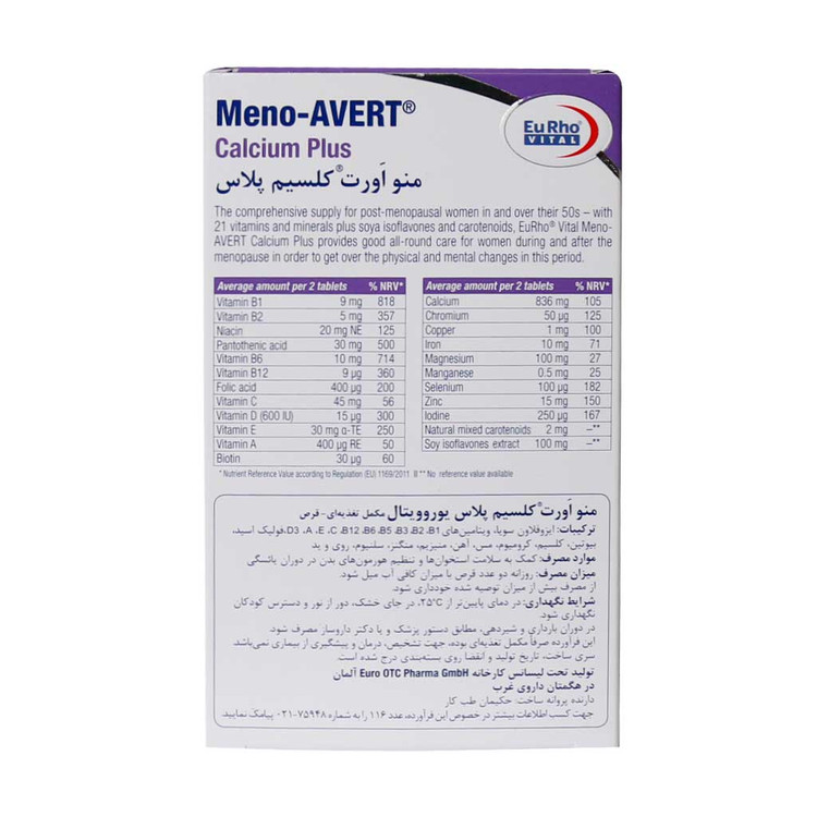 - منو اورت کلسیم پلاس، مکمل مولتیویتامین-مینرال مخصوص دوران یائسگی