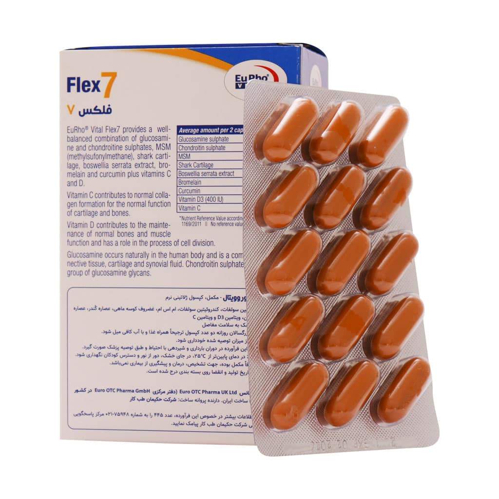فلکس ۷ مکمل تخصصی جهت کمک به حفظ سلامت مفاصل و غضروفها فلکس ۷ حاوی گلوکزآمین سولفات، کندروئیتین سولفات، MSM، عصاره کندر، کورکومین، غضروف کوسه ماهی، بروملین و ویتامینهای C و D کمک به کاهش درد، التهاب، خشکی و ورم مفاصل بهبود انعطاف و تسهیل حرکت مفاصل کمک به ترمیم غضروفها و جلوگیری از تخریب آنها با مصرف فلکس 7 یوروویتال مفید جهت تسکین علائم استئوآرتریت کمک به حفظ سلامت استخوانها با داشتن ویتامین D3
