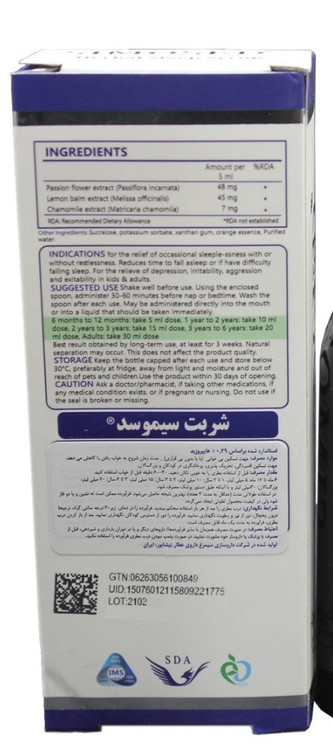 - شربت سیموسد، برای کمک به رفع بی خوابی و بی قراری در کودکان و بزرگسالان