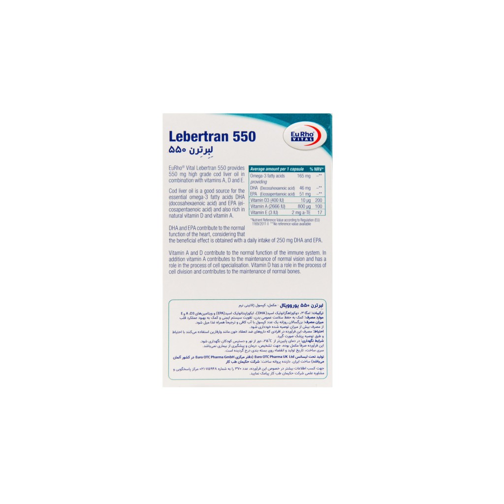 لبرترن حاوی حاوی 550 میلی گرم روغن کبد ماهی به ازای هر کپسول ژلاتینی