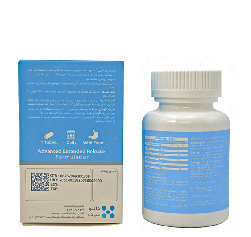 فولیکوژن، ترکیب تخصصی تقویت مو با ۲۵۰ میلیگرم ال-متیونین، ۵۰ میلیگرم ال-سیستین، ۱۵ میلیگرم زینک، ۱ میلیگرم فولیک اسید، ۱ میلیگرم مس، ۰.۰۵ میلیگرم سلنیوم، ۰.۲۵ میلیگرم بیوتین و ۱۰۰۰ IU ویتامین D3 در هر قرص برای پیشگیری از ریزش مو و تحریک رشد پیشگیری از ریزش مو ناشی از سوءتغذیه یا رژیم غذایی نامناسب با تأمین آمینو اسیدهای گوگرددار و مواد معدنی ضروری برای تقویت فولیکولهای مو فولیکوژن، مفید در بهبود سلامت پوست و ناخن با بیوتین، ویتامین E و زینک برای افزایش کلاژنسازی، استحکام ناخن و کاهش خشکی پوست تقویت سیستم ایمنی با زینک، سلنیوم و ویتامین D3 برای کاهش التهاب پوست سر و پیشگیری از عفونتهای پوستی مرتبط با ریزش مو فرمولاسیون پیوسته رهش برای جذب تدریجی مواد مغذی و کاهش مشکلات گوارشی، مناسب برای مصرف طولانیمدت قرص فولیکوژن، فاقد گلوتن برای ایمنی بالا و مناسب برای افراد مبتلا به سلیاک یا حساسیت به گلوتن تولید با استانداردهای دارویی بالا برای تضمین کیفیت و اثربخشی محصول