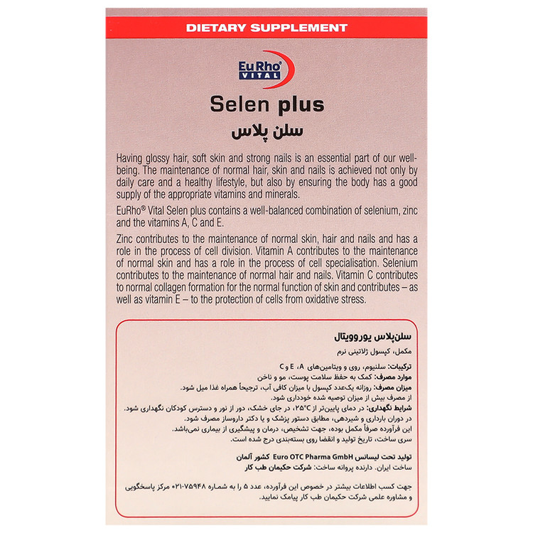 - سلن پلاس یوروویتال برای کمک به تامین سلنیوم، زینک و ویتامینهای C ،A و E