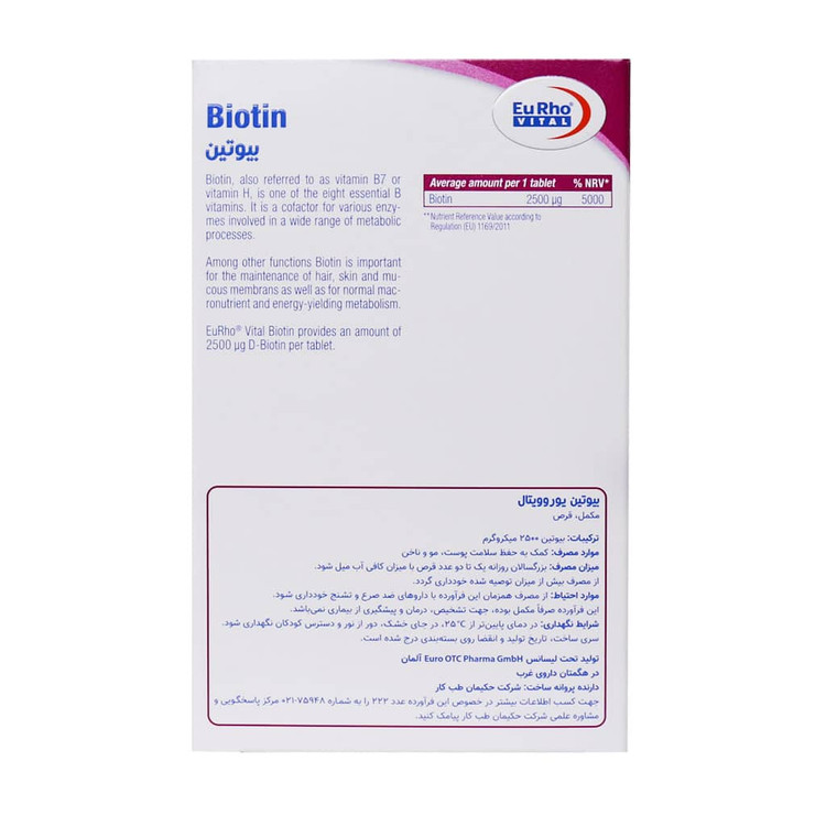 - هر قرص بیوتین یوروویتال، حاوی 2500 میکروگرم بیوتین