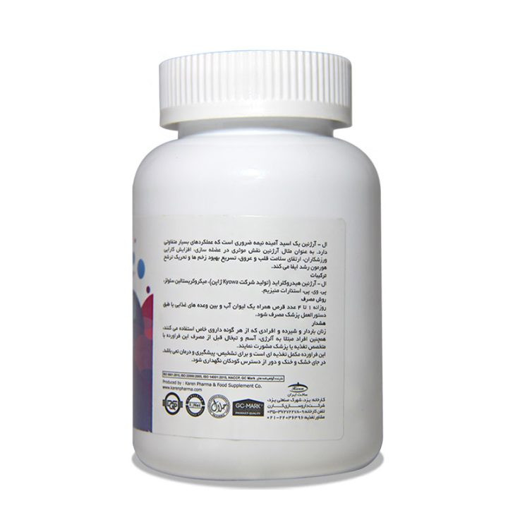 - ال آرژنین کارن، دارای 90 عدد قرص ال آرژنین 1000 میلی گرم