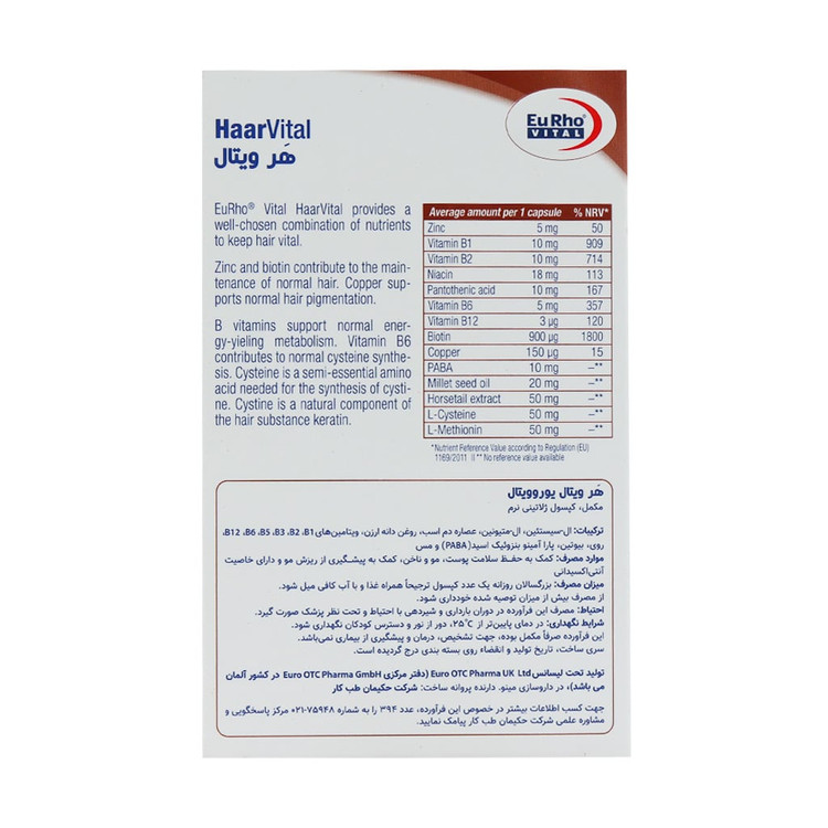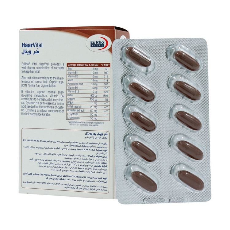 - Haar vital، موثر در حفظ رنگدانههای مو و به تعویق انداختن روند سفیدی مو