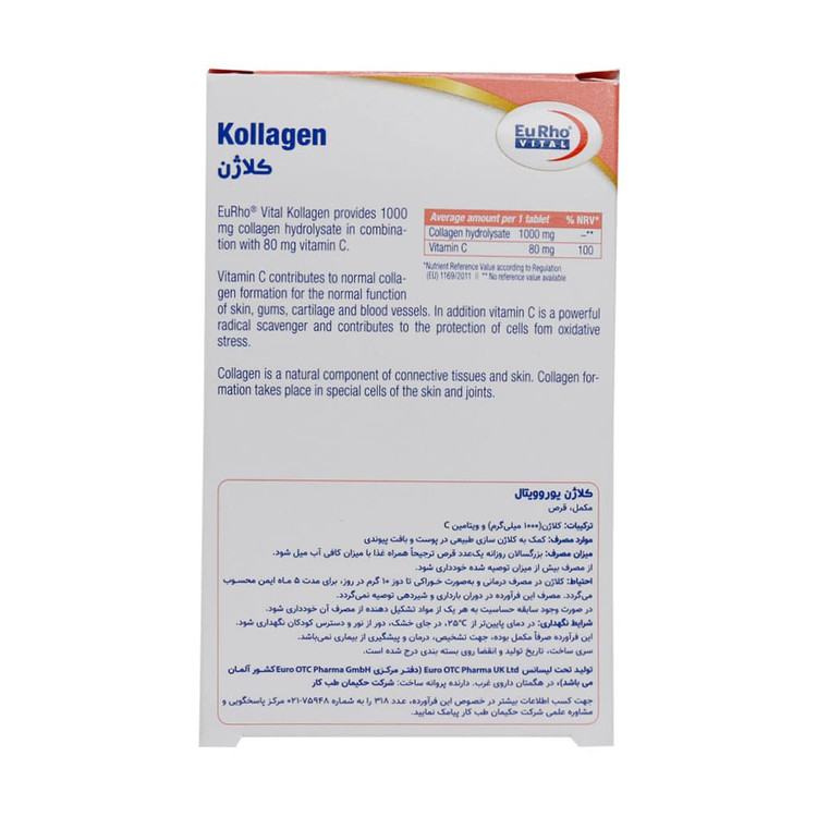 - کلاژن ۱۰۰۰ یوروویتال حاوی کلاژن هیدرولیزات (با منشا ماهی) و ویتامین C