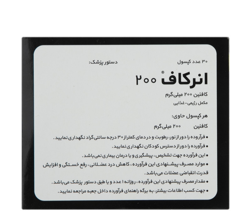 - هر کپسول انرکاف حاوی 200 میلی گرم کافئین