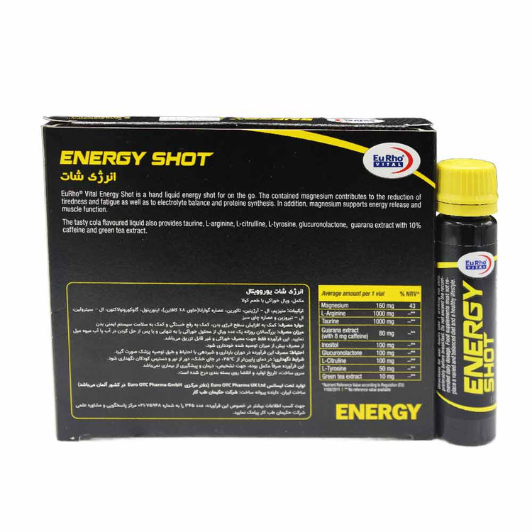 - انرژی شات یوروویتال، دارای عصاره گوارانا (کافئین گیاهی)