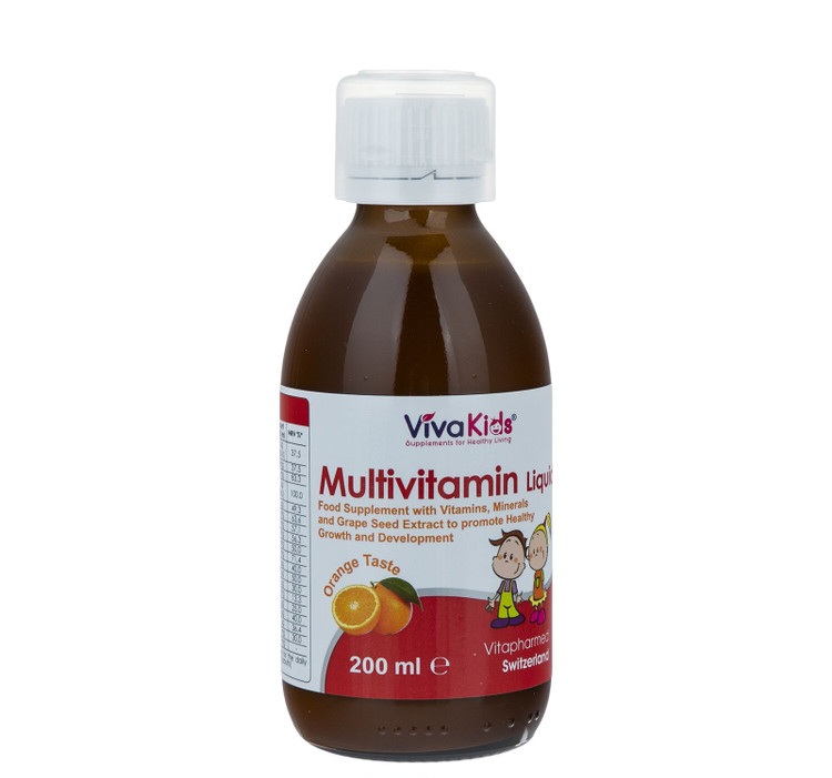 شربت مولتی ویتامین ویواکیدز، محلول خوراکی مخصوص کودکان موثر در رشد طبیعی جسمی و ذهنی کودکان مولتی ویتامین ویواکیدز دارای طعم پرتقال حاوی 18 ویتامین و ماده معدنی به همراه عصاره دانه انگور فاقد گلوتن و لاکتوز موثر در حفظ سلامت سیستم ایمنی کودکان بعد از باز شدن درب شربت ویواکیدز، در یخچال نگهداری شود.