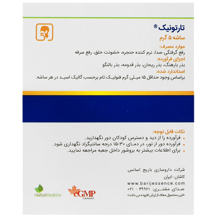 - تارتونیک باریج، پودر خوراکی گیاهی برای بهبود سرفه و گلودرد