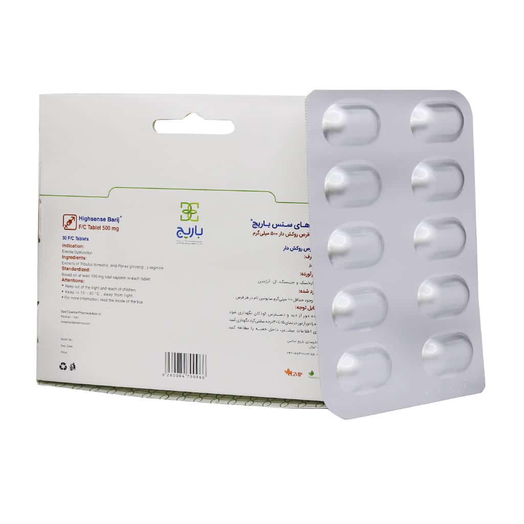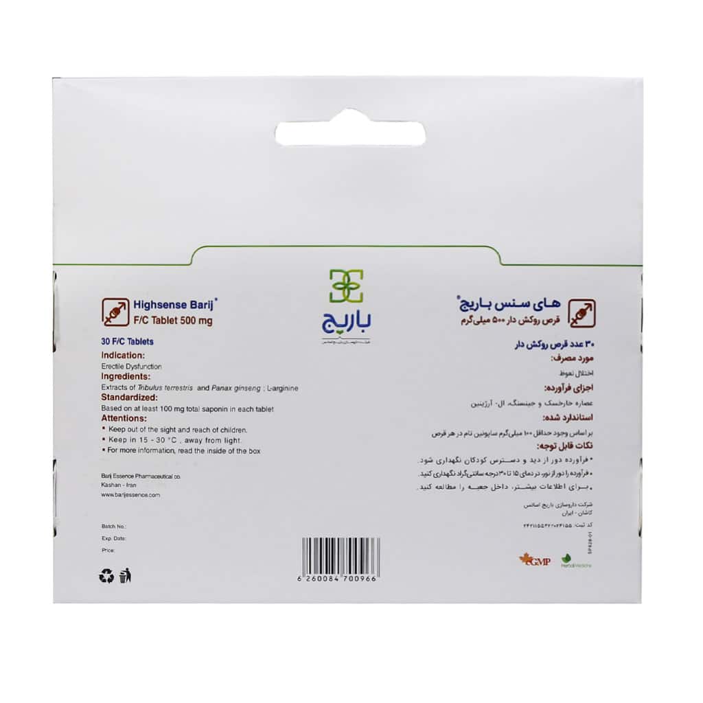 قرص هایسنس حاوی عصاره خارخاسک و جینسینگ و اسید آمینه ال-آرژنین قرص هایسنس مفید برای حمایت از عملکرد جنسی آقایان های سنس باریج مناسب برای بهبود اختلالات نعوظ و افزایش میل جنسی کمک به گشادسازی عروق و افزایش جریان خون به اندام تناسلی وگان و بدون تست حیوانی فاقد گلوتن، الکل، لاکتوز و غیر تراریخته