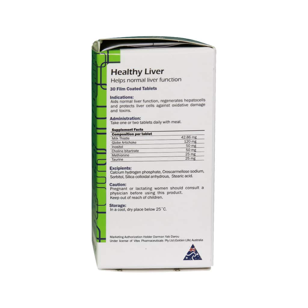 هلسی لیور حاوی ترکیبات گیاهی موثر در حفظ عملکرد طبیعی کبد و کیسه صفرا هلسی لیور موثر در کمک به بازسازی سلول های کبدی قابل توصیه در پیشگیری و درمان کبد چرب به ویژه با دارا بودن کمپلکس گیاهی متشکل از خار مریم و کنگر فرنگی قرص هلسی لیور محافظت کننده از کبد در برابر سموم، استرس های اکسیداتیو و کاهش عوارض کبدی برخی داروها قرص healthy liver مفید در کاهش چربی خون حاوی ترکیبات آنتی اکسیدان