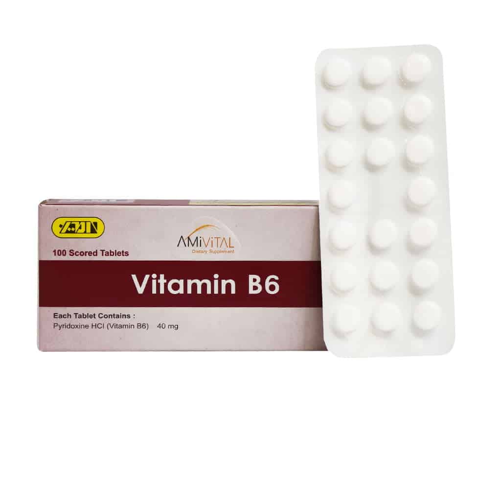 ویتامین ب6 امی ویتال، مکمل تغذیهای حاوی 40 میلیگرم ویتامین B6 ویتامین B6 امی ویتال، کمککننده به تأمین نیاز بدن به ویتامین B6 مناسب جهت کمک به بهبود کمبود ویتامین B6 ناشی از عدم کفایت رژیم غذایی و یا کمبود ناشی از داروها قرص ویتامین ب6 امی ویتال، قابل استفاده جهت کمک به کنترل سندرم پیش از قاعدگی (PMS) کمککننده به کاهش سطح هموسیستئین خون دارای اثرات کمکی در حفظ و بهبود سلامت مو فاقد گلوتن و قابل استفاده در افراد حساس به گلوتن
