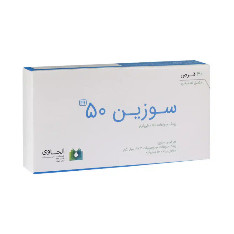 - قرص سوزین 50 حاوی 50 میلی گرم زینک خالص به فرم سولفات در هر قرص