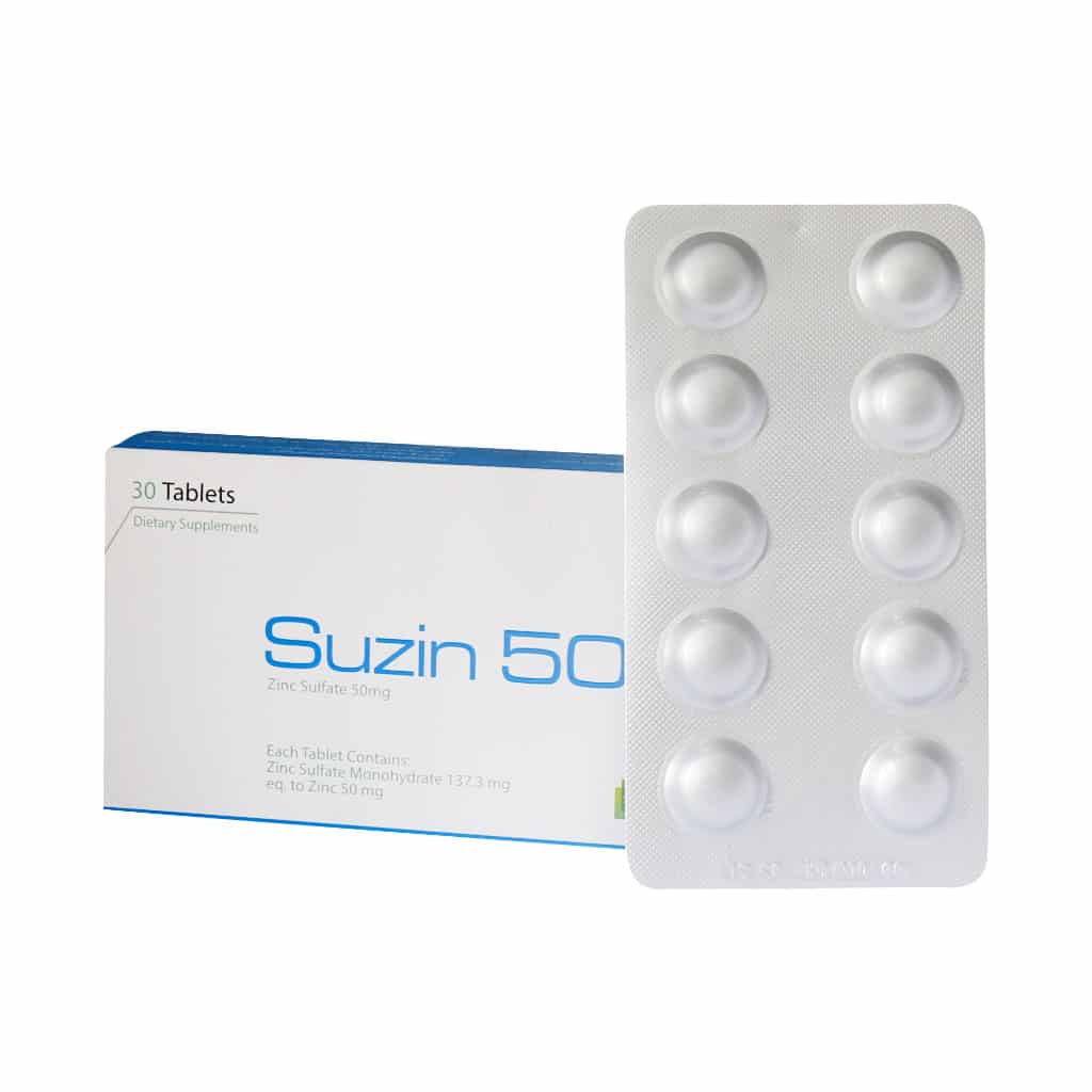 - قرص سوزین 50 حاوی 50 میلی گرم زینک خالص به فرم سولفات در هر قرص