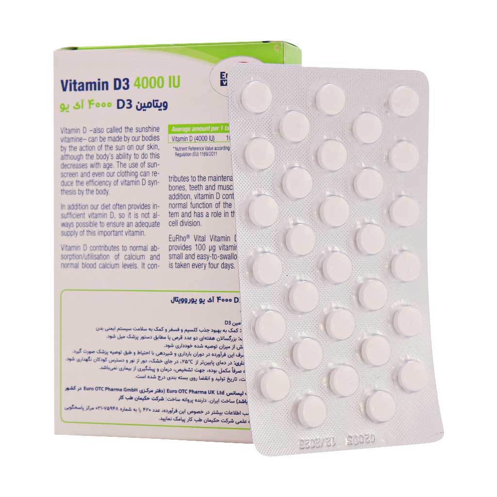 - ویتامین دی یوروویتال، حاوی 4000 واحد بین المللی ویتامین D به ازای هر قرص